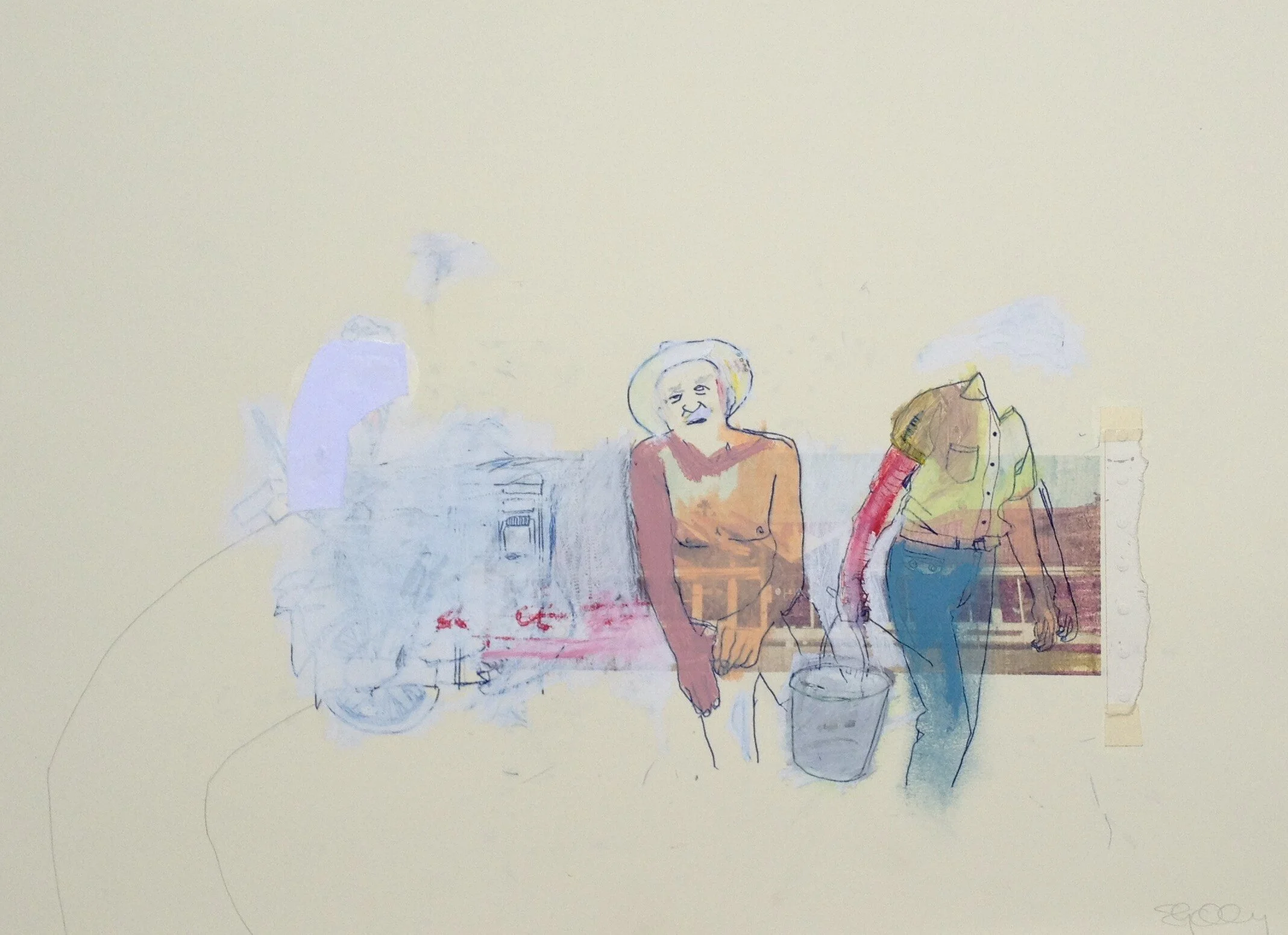 Life in a Small Town 2008, screen printing, acrylic paint, pencil, gap filler, and collage on paper, 76x56cm. Image: the artist.